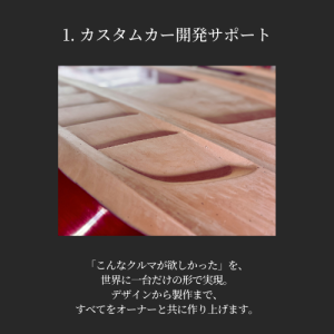 『Modeling Studio R』は“世界で1台だけ”のカスタムカーの開発サポートに貢献します。クルマ好きの中でも「唯一無二」を希望される方々に向け、所有欲を刺激する1台を完成させるコンシェルジュとしての役割を担います。
